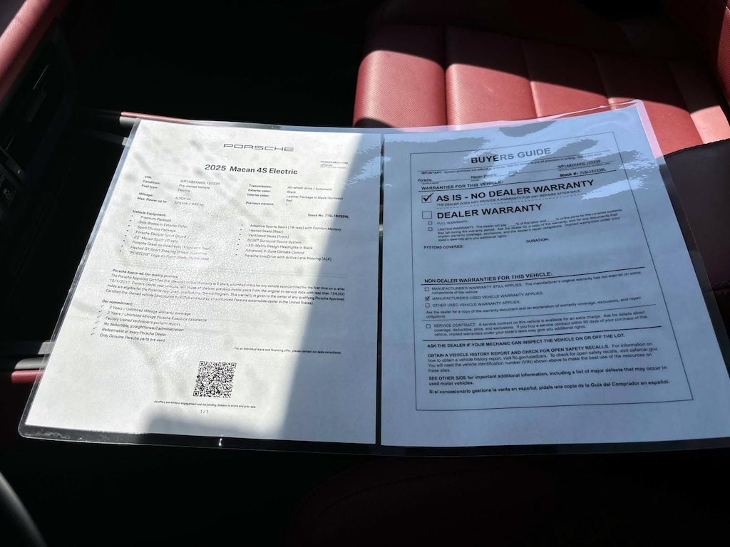 As a Porsche Approved Certified Pre-Owned vehicle, this Macan Electric 4S has undergone a rigorous multipoint inspection and comes with a comprehensive warranty and roadside assistance program. With the peace of mind of a certified pre-owned purchase, you can confidently enjoy the thrill of Porsche ownership.