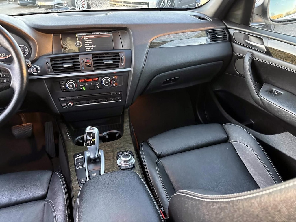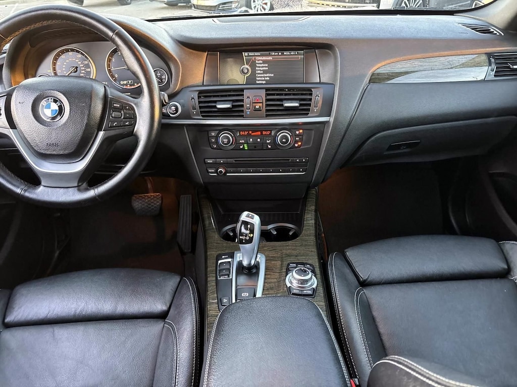 Storage Package, X-Line Exterior Trim Package, 8-Speed Automatic Steptronic, BMW Assist w/Enhanced Bluetooth® & USB, Navigation System, Online Information Services, Real Time Traffic Information, 12 Speakers, 18" x 8.0" V Spoke (Style 307) Wheels, 3.385 Axle Ratio, 4-Wheel Disc Brakes, 40-20-40 Split Folding Rear Seats, ABS brakes, Adaptive Light Control, Air Conditioning, Alloy wheels, AM/FM radio, Ambiance Lighting, Anthracite Headliner, Anti-Theft AM/FM Stereo/CD/MP3 Audio System, Anti-whiplash front head restraints, Auto-Dimming Interior & Exterior Mirrors, Auto-Dimming Rear-View Mirror, Automatic temperature control, Bodyside moldings, Brake assist, Bumpers: body-color, CD player, Comfort Access Keyless Entry, Delay-off headlights, Driver door bin, Driver vanity mirror, Dual front impact airbags, Dual front side impact airbags, Electronic Stability Control, Fineline Wave Wood Trim, Four wheel independent suspension, Front anti-roll bar, Front Bucket Seats, Front Center Armrest, Front dual zone A/C, Front fog lights, Front reading lights, Fully automatic headlights, Heated Front Seats, Heated Steering Wheel, Illuminated entry, Leather steering wheel, Leatherette Upholstery, Low tire pressure warning, Lumbar Support, Memory seat, Occupant sensing airbag, Outside temperature display, Overhead airbag, Panic alarm, Panoramic Moonroof, Passenger door bin, Passenger vanity mirror, Power door mirrors, Power driver seat, Power Liftgate, Power passenger seat, Power steering, Power windows, Radio data system, Rain sensing wipers, Rear anti-roll bar, Rear fog lights, Rear reading lights, Rear seat center armrest, Rear window defroster, Rear window wiper, Remote keyless entry, Satellite Radio, Satin Aluminum Roof Rails, Security system, Speed control, Speed-sensing steering, Speed-Sensitive Wipers, Split folding rear seat, Spoiler, Sport Seats, Sports Leather Steering Wheel, Steering wheel mounted audio controls, Tachometer, Telescoping steering wheel, Tilt steering wheel, Traction control, Trip computer, Universal Garage-Door Opener, Variably intermittent wipers, and Xenon Headlights. Recent Arrival! 21/28 City/Highway MPG