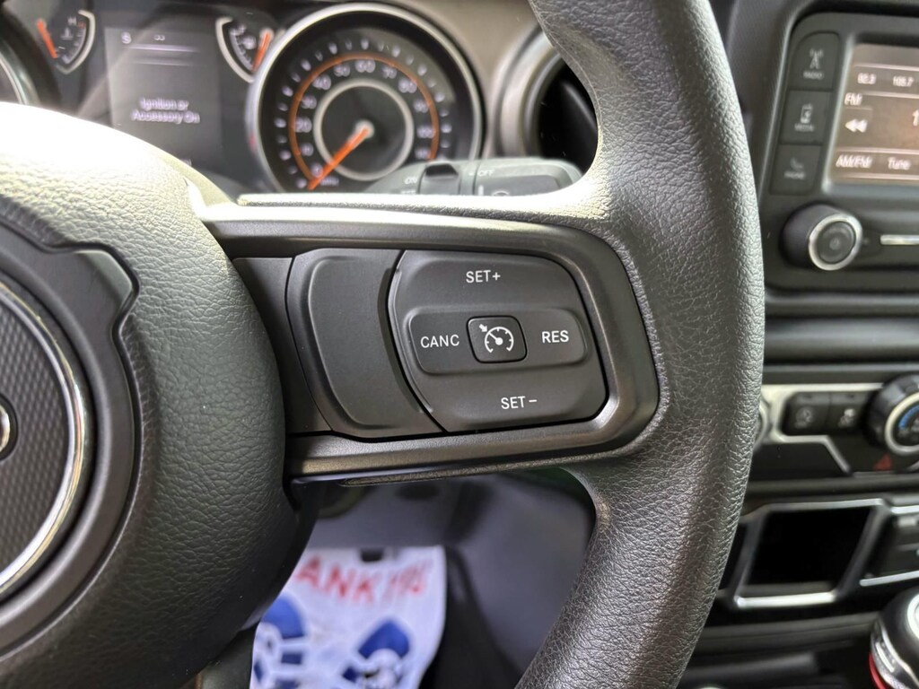 Quick Order Package 23B Sport, 4WD, 3.45 Rear Axle Ratio, 4-Wheel Disc Brakes, 8 Speakers, ABS brakes, Air Conditioning, AM/FM radio, Anti-Spin Differential Rear Axle, Aux Battery, Black 3-Piece Hard Top, Brake assist, Bridgestone Brand Tires, Cloth Low-Back Bucket Seats, Compass, Deep Tint Sunscreen Windows, Delay-off headlights, Driver door bin, Driver vanity mirror, Dual front impact airbags, Dual front side impact airbags, Electronic Stability Control, Freedom Panel Storage Bag, Front anti-roll bar, Front Bucket Seats, Front Center Armrest w/Storage, Front fog lights, Front reading lights, Integrated roll-over protection, Integrated Voice Command w/Bluetooth, Jeep Trail Rated Kit, Low tire pressure warning, MOPAR All-Weather Floor Mats (DISC), MOPAR Cargo Tub Liner, MOPAR Plastic Door Sill Guards (DISC), No Soft Top, Non-Lock Fuel Cap w/o Discriminator, Normal Duty Suspension, Occupant sensing airbag, Outside temperature display, ParkView Rear Back-Up Camera, Passenger door bin, Passenger vanity mirror, Power steering, Radio data system, Radio: Uconnect 3 w/5" Display, Rear anti-roll bar, Rear reading lights, Rear Window Defroster, Rear Window Wiper/Washer, Speed control, Split folding rear seat, Steering wheel mounted audio controls, Stop-Start Dual Battery System, Tachometer, Telescoping steering wheel, Tilt steering wheel, Traction control, Trip computer, Variably intermittent wipers, and Wheels: 17" x 7.5" Black Steel Styled.