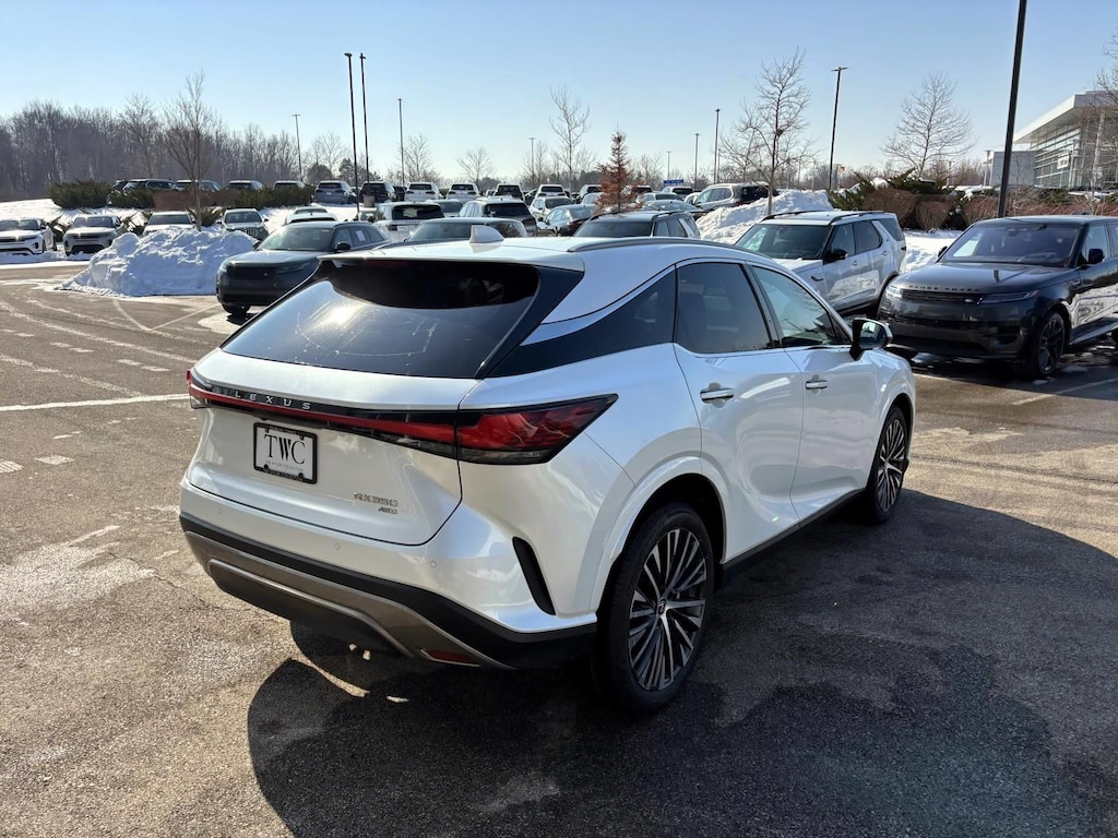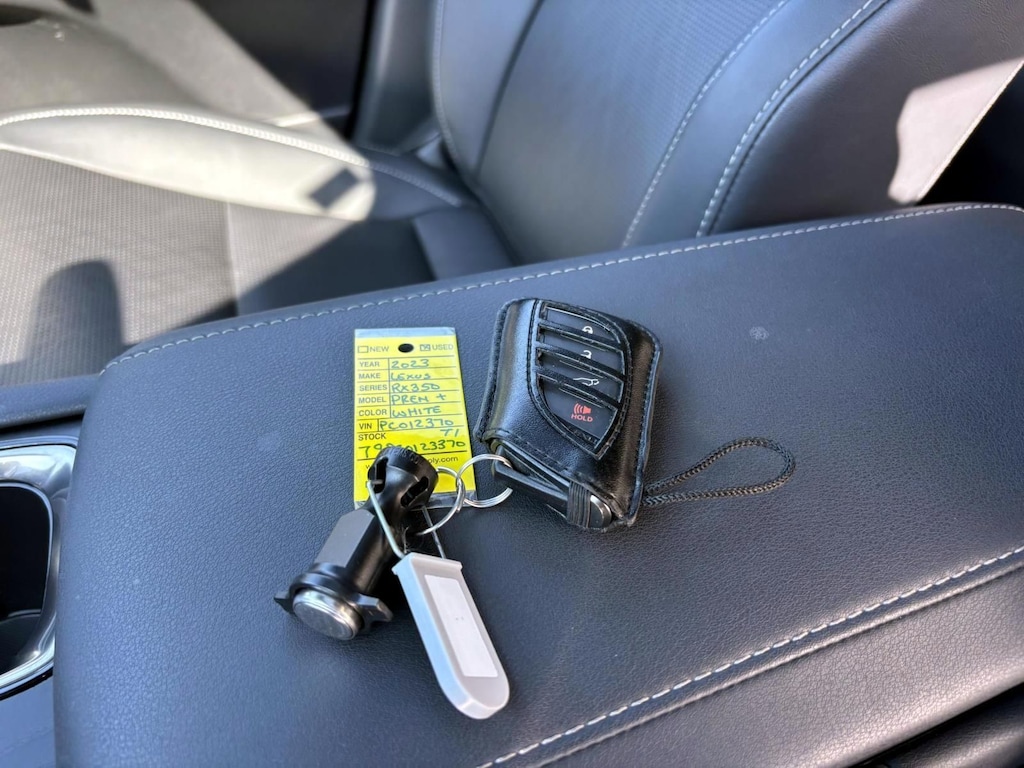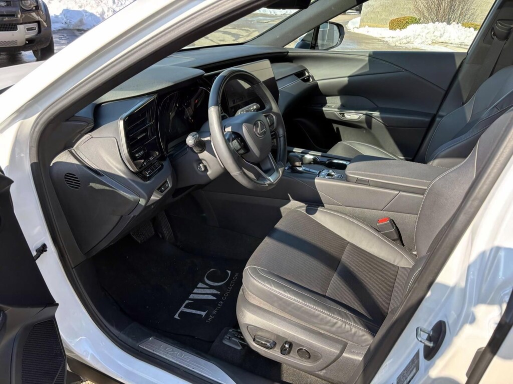 Eminent White Pearl 2023 Lexus RX 350 Premium Plus AWD 8-Speed Automatic 2.4L I4 PDI Turbocharged DOHC 16V LEV3-SULEV30 275hp AWD, Black w/Black Open Pore w/Leather Seat Trim, 8-Way Power Driver & Front Passenger Seat Adjusters, ABS brakes, Active Cruise Control, Compass, Electronic Stability Control, Finish Plate Door Inner Garnish, Front dual zone A/C, Head-Up Display (HUD), Heated & Ventilated Front Bucket Seats, Heated door mirrors, Heated front seats, Illuminated entry, Leather Seat Trim, Low tire pressure warning, Multi-Color Illuminated Entry System, Parking Support Alert/Brake, Power Liftgate, Power Tilt & Slide Moonroof, Premium Plus Package, Remote keyless entry, Traction control, Wheels: 21" 20-Spoke Alloy, Wireless Charger, Wood Steering Wheel w/Paddle & Heater.
