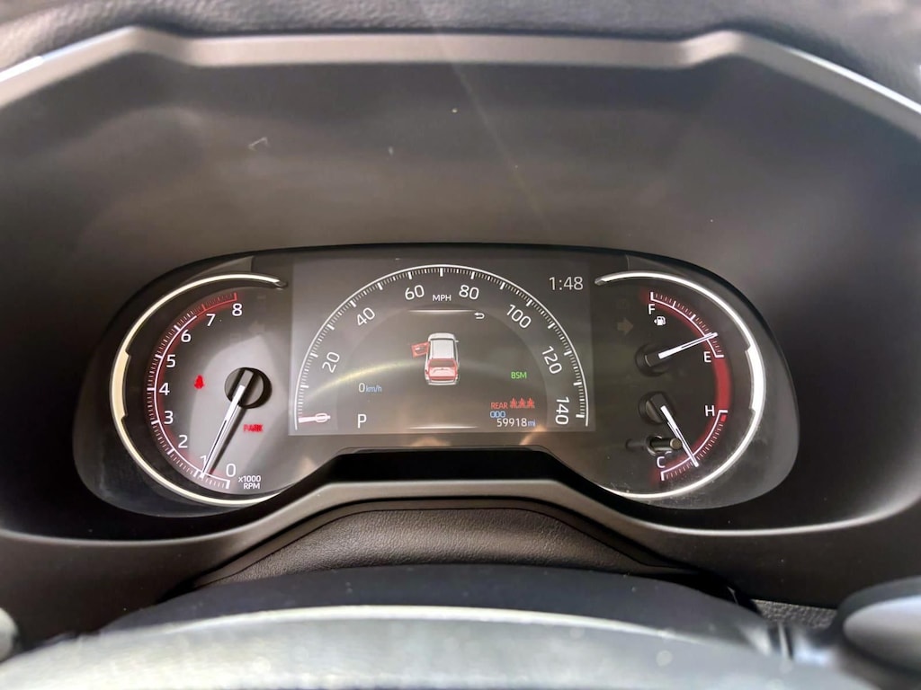 AWD, Black w/SofTex Seat Trim, 4-Wheel Disc Brakes, 6 Speakers, ABS brakes, Air Conditioning, Alloy wheels, AM/FM radio: SiriusXM, Apple CarPlay, Auto High-beam Headlights, Automatic temperature control, Axle Ratio: 3.177, Brake assist, Bumpers: body-color, Delay-off headlights, Driver door bin, Driver vanity mirror, Dual front impact airbags, Dual front side impact airbags, Electronic Stability Control, Emergency communication system: Entune Safety Connect, Exterior Parking Camera Rear, Four wheel independent suspension, Front anti-roll bar, Front Bucket Seats, Front Center Armrest, Front dual zone A/C, Front fog lights, Front reading lights, Fully automatic headlights, Heated door mirrors, Illuminated entry, Knee airbag, Low tire pressure warning, Occupant sensing airbag, Outside temperature display, Overhead airbag, Overhead console, Panic alarm, Passenger door bin, Passenger vanity mirror, Power door mirrors, Power driver seat, Power Liftgate, Power steering, Power windows, Radio data system, Radio: Entune 3.0 Audio Plus, Rear anti-roll bar, Rear seat center armrest, Rear window defroster, Rear window wiper, Remote keyless entry, Roof rack: rails only, Security system, SofTex Seat Trim, Speed control, Speed-sensing steering, Split folding rear seat, Spoiler, Steering wheel mounted audio controls, Tachometer, Telescoping steering wheel, Tilt steering wheel, Traction control, Trip computer, Turn signal indicator mirrors, Variably intermittent wipers, and Wheels: 19" x 7.5J Alloy. Recent Arrival! Odometer is 25646 miles below market average! 25/33 City/Highway MPG