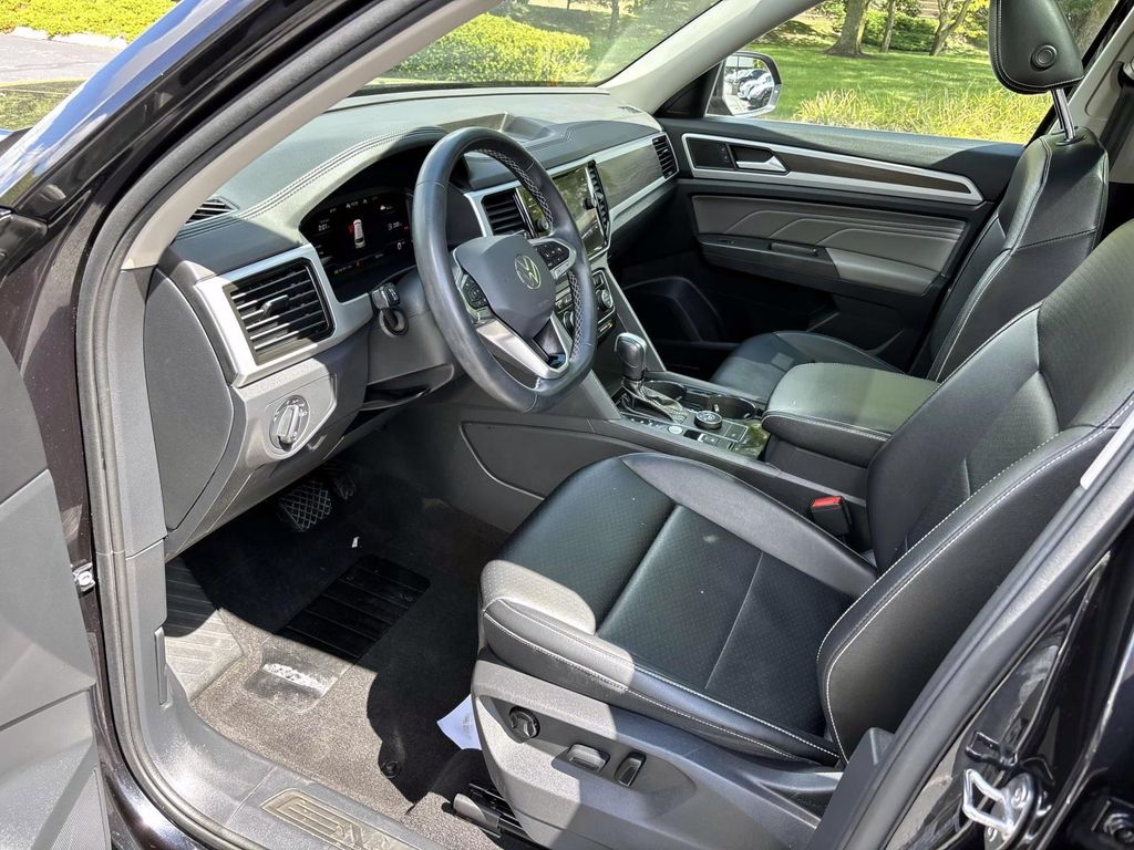Deep Black Pearl 2022 Volkswagen Atlas 3.6L V6 SE w/Technology AWD 8-Speed Automatic with Tiptronic 3.6L VR6 3rd row seats: split-bench, Automatic temperature control, Electronic Stability Control, Front Bucket Seats, Heated Comfort Front Bucket Seats, Heated door mirrors, Heated front seats, Panoramic Sunroof Package, Perforated V-Tex Leatherette Seating Surfaces, Power driver seat, Power Tilting & Sliding Panoramic Sunroof, Radio: MIB3 Composition Media w/8" Touchscreen, Steering wheel mounted audio controls, Volkswagen Logo Puddle Lights, Wheels: 20" x 8J 5-Spoke Silver Painted Alloy.