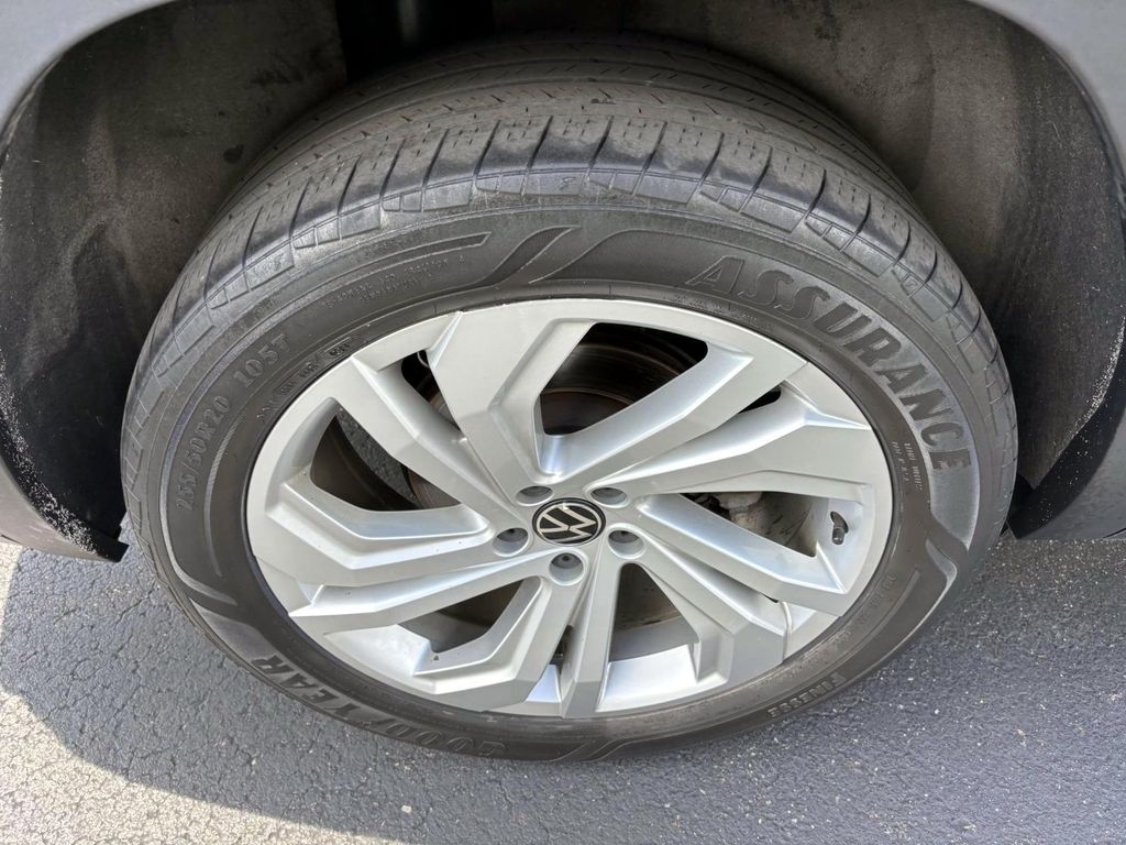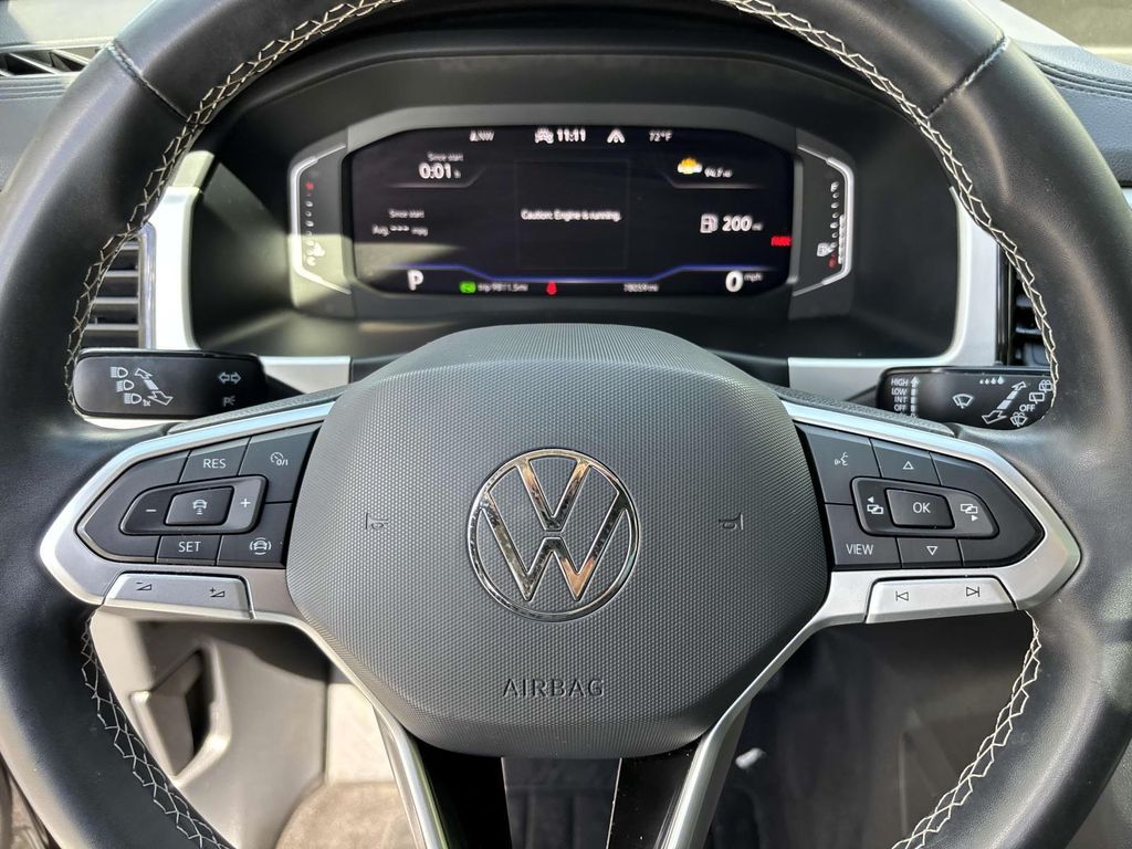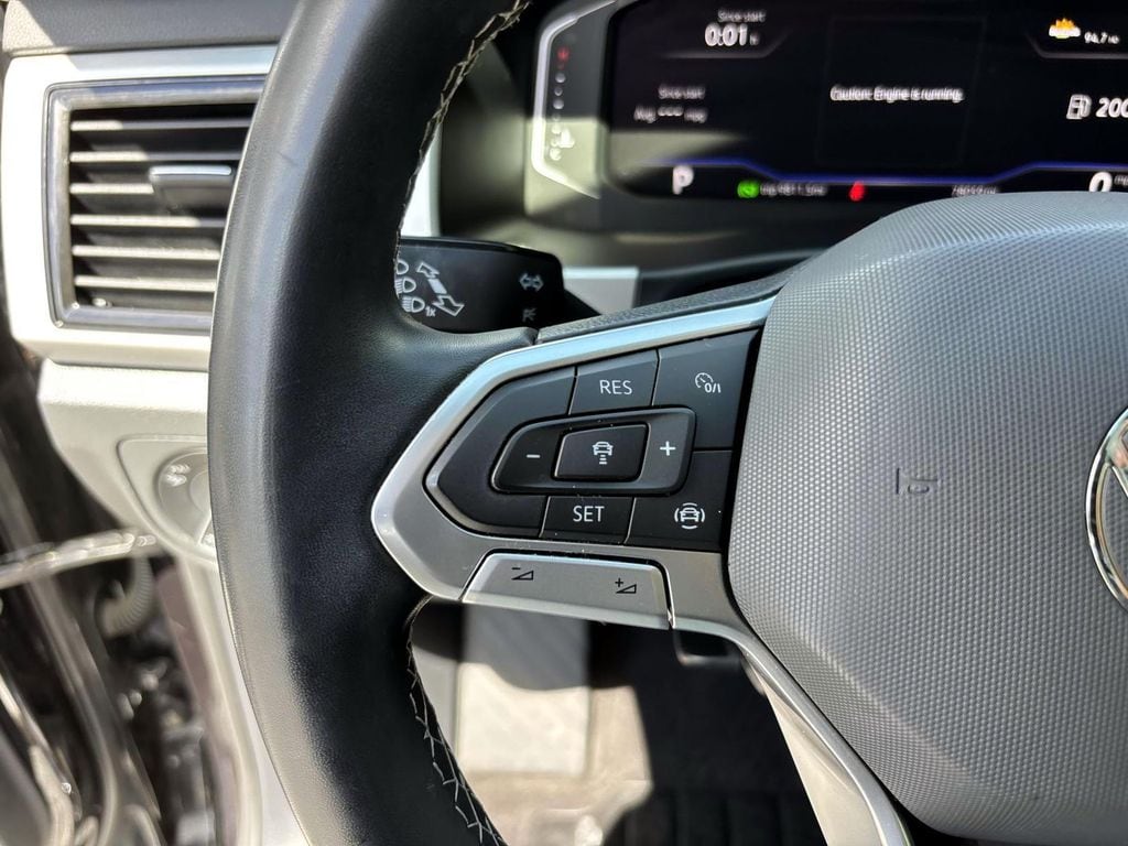 Panoramic Sunroof Package (Power Tilting & Sliding Panoramic Sunroof), Trailer Hitch Extras, 3rd row seats: split-bench, Automatic temperature control, Electronic Stability Control, Front Bucket Seats, Heated Comfort Front Bucket Seats, Heated door mirrors, Heated front seats, Perforated V-Tex Leatherette Seating Surfaces, Power driver seat, Radio: MIB3 Composition Media w/8" Touchscreen, Steering wheel mounted audio controls, Volkswagen Logo Puddle Lights, Wheels: 20" x 8J 5-Spoke Silver Painted Alloy, 3.60 Axle Ratio, 4-Wheel Disc Brakes, 6 Speakers, ABS brakes, Air Conditioning, Alloy wheels, AM/FM radio: SiriusXM with 360L, Auto-Dimming Rear-View Mirror, Auto-dimming Rear-View mirror, Brake assist, Bumpers: body-color, Compass, Delay-off headlights, Driver door bin, Driver vanity mirror, Dual front impact airbags, Dual front side impact airbags, Emergency communication system, Extended Range Remote Key Fob, Exterior Parking Camera Rear, First Aid Kit, Four wheel independent suspension, Front anti-roll bar, Front Center Armrest, Front dual zone A/C, Front fog lights, Front reading lights, Fully automatic headlights, Illuminated entry, Leather Shift Knob, Low tire pressure warning, Occupant sensing airbag, Outside temperature display, Overhead airbag, Overhead console, Panic alarm, Passenger door bin, Passenger vanity mirror, Power door mirrors, Power Liftgate, Power steering, Power windows, Radio data system, Rain sensing wipers, Rear air conditioning, Rear anti-roll bar, Rear reading lights, Rear seat center armrest, Rear window defroster, Rear window wiper, Remote keyless entry, Roadside Assistance Kit, Roof rack: rails only, Rubber Mats Kit - Bench Seats, Security system, Speed control, Speed-sensing steering, Split folding rear seat, Spoiler, Standard Suspension, Tachometer, Telescoping steering wheel, Tilt steering wheel, Traction control, Trip computer, Trunk Liner w/VW CarGo Blocks, Turn signal indicator mirrors, Variably intermittent wipers, VW Car-Net Safe & Secure 3-Yr Prepaid Subscription, and VW Care. Recent Arrival!